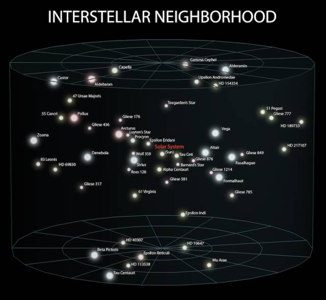但是,当你仰望夜空时,不管你是站在地球的哪个地方,你能看到的星星最多也不过是其中的2500颗左右。原因是:1)如果恒星太远而又不太亮,你就看不到了;2)星际尘埃会吸收掉遥远恒星发出的光线,我们通过可见光只能看到银河系一小块儿区域的恒星。