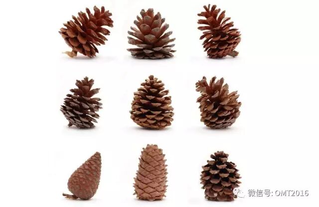 松果的鳞片也以螺旋状排列,小型的松果鳞片向右或向左排出 5 列,反方向则有 8 列;较细长松果的则是 8 列或 13 列: