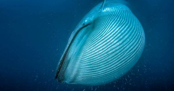 须鲸科利用其巨嘴来滤食磷虾和鱼。