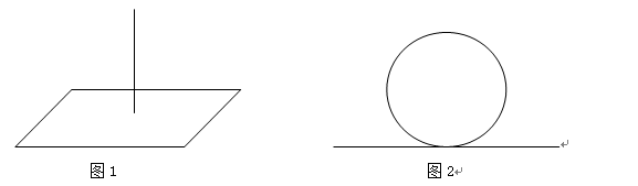 我们可以改编大师罗丹的话:数学中不是缺少美,而是我们缺少发现美的眼睛。我们以一首人文诗词来解释数学的美——大漠孤烟直,长河落日圆。这首诗描绘了雄阔,壮美的大漠图景。从几何学的角度上看,“大漠”可视为一个平面,而直上“孤烟”是垂直于地面的直线(图1)。第二句是是将横卧的长河视为一条直线,逐渐下沉的落日被视为一个圆,“长河落日圆”便是一个圆切于一条直线(如图2),两图对照,泾渭分明,简洁明了,刚柔相济。