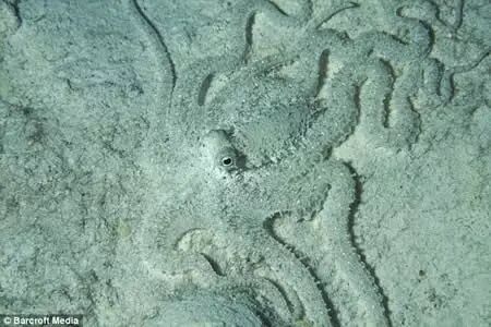 章鱼还有一个特技:duang~~隐身。它可以迅速改变颜色和质感使自己隐藏于周围的环境中,仿佛穿上了一件隐身斗篷。它还“72变”(拟态),模仿成有剧毒的生物吓唬天敌。