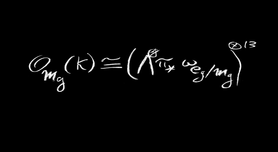 这个公式意味着什么?它优美在何处?它表明:两个对象(“线丛”)本质相同(“同构”)。等式左边的对象决定Mg的几何。追溯至高斯8,人们就已经知道空间可大致分为三种:像平面一样的平坦空间;像球面一样的正曲率空间;以及像马鞍面一样的负曲率空间(曲面上三角形内角和小于180°)。等式左边决定了Mg在上述三分法中的位置;博特9将等式右边称为“重言”结构:完全由Mg决定的基本对象。上述同构表明,在g充分大的条件下,Mg是负曲率空间。