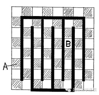 上图就是那个漂亮的证明。不妨对它再赘述两句。粗黑线条将整个棋盘转变为一条首尾相连、黑白格相间的封闭路线。从这棋盘上切掉任何两个颜色不同的方格,会让这个封闭线路变成两段线路(如果切掉的方格是相连的,那就是一条线路)。在这两段(或一段)线路中,两种颜色的格子数量都是偶数,故分别都可以被若干张骨牌覆盖。从而证明整个棋盘可以被31张骨牌完全覆盖。