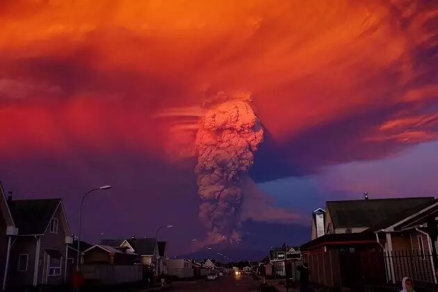 “这张无与伦比的多色调图片记录了2015年4月智利卡尔布科火山(Calbuco volcano )喷发时的场景,1 500名居民因此撤离居住地,飘散的火山灰形成的立柱高达16千米。”