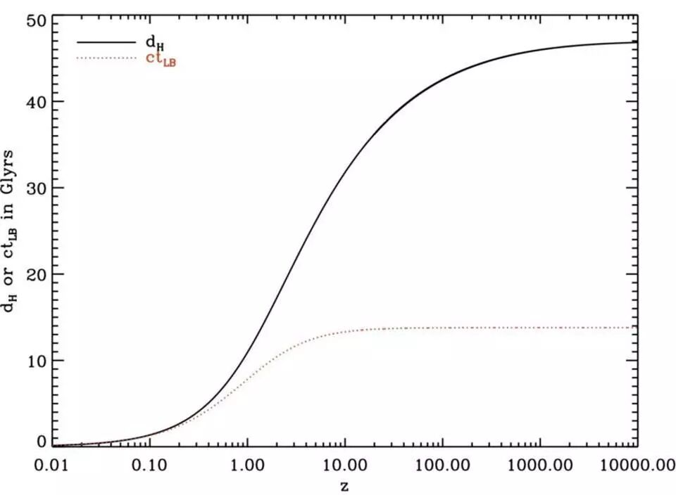 我们看的越远,说明我们看到了更远的过去。当只有当广义相对论适用于宇宙膨胀时才成立。