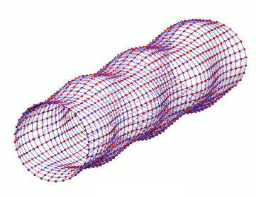 计算机模拟利用Kip Thorne和其他许多人开发的先进技术让我们得以模拟出由合并黑洞产生的引力波所产生的预测信号。图片:Werner Benger, cc by-sa 4.0
