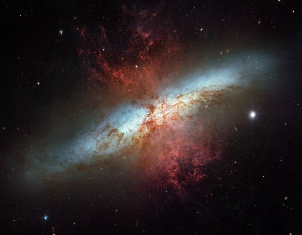 M82,又称为雪茄星系(Cigar Galaxy),距离我们约为1200万光年。
