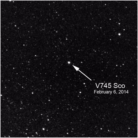 几十年来,天文学家们已经认识了双星系统V745 Sco中的不规则爆发活动。这个系统坐落在距离地球25000光年之外的地方。先前的爆发在1937年和1989年被观测到时,天文学家们因为惊奇而受到吸引。不过,当这个双星系统在2014年2月6日又一次爆发的时候,科学家们已经准备好了用包括NASA钱德拉X射线天文台在内的一系列望远镜对爆发事件进行观测。
