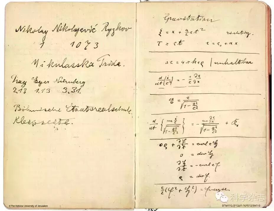 根据保存下来的“苏黎世日记”,爱因斯坦经常在坚持物理理念与数学处理手法之间徘徊。[11]爱因斯坦为了坚持守恒定律限制了坐标系的选择;为了维护因果性,放弃了广义协变性的要求。尽管前途未卜,他还是充满信心:“大自然只把狮子的尾巴显露给了我们。但我确信无疑,狮子是个庞然大物,尚不能立即全部显露在我们眼前。我们见到的就像叮在狮子身上的虱子所见到的一样。”[8]