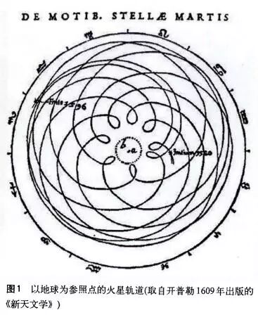 开普勒1601年自第谷手中继承的行星轨道观测数据就是以地球为中心的,若将火星的轨道画出来,大致上如图1所示。对这样的轨道要想给出一个简明的数学描述,太挑战人的数学才能了。将参照点移到太阳上,重新计算的火星轨道看起来则是一个简单多了的闭环。开普勒尝试用卵形线去描述这样的火星轨道,在一番失败以后,他于1605年引入了椭圆轨道的概念,这构成了所谓的开普勒第一定律。注意,开普勒第二定律是1602年就被发现了的。