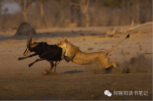 尽管狮子已经被年龄拖累,但这头大型的猫科动物依然是出色的短跑运动员,它们之间的距离开始接近。但是狮子强有力的快肌纤维渐渐变得缺氧,不久羚羊天生的耐力取胜了,在某一刻,狮子和它的猎物之间的相对速度变成了负号,距离从起初的渐渐缩短,到慢慢开始拉大。好运稍纵即逝,狮子意识到失败了,它灰溜溜地回到灌木丛中。