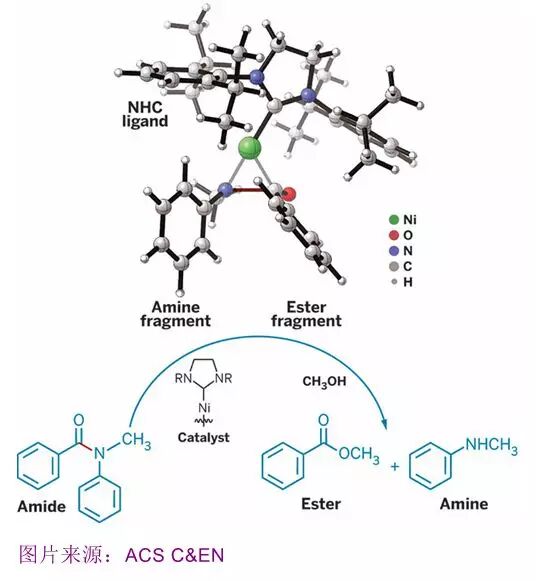 过渡金属催化的反应在有机合成中非常成功,特别是用于交叉偶联构造碳-碳和碳-杂原子键。钯催化剂已经普遍应用在这些反应中,但化学家们更有兴趣将催化剂换成储量更丰富、成本较低的金属,如铁,镍和其它周期表第一行金属。在2015年,镍继续在这个角色上熠熠生辉——化学家们利用它来催化更广泛范围的反应。比如,Dalhousie大学的Mark Stradiotto和同事报道了第一例镍催化的氨的芳基化反应合成胺。研究人员使用空气中稳定的Ni(cyclooctadiene)2或NiCl2(dimethoxyethane)与被称为JosiPhos的二茂铁基膦配体以将取代的芳基和杂芳基溴化物、氯化物和甲苯磺酸酯与氨连接起来合成出多种芳基胺和杂芳基胺(Angew. Chem. Int. Ed., 2015, DOI: 10.1002/anie.201410875)。在另一个例子中,以Kendall N. Houk和Neil K. Garg为首的加州大学洛杉矶分校的团队开发出了镍环辛/ N-杂环卡宾催化剂,可以切割和活化一般比较惰性的酰胺基团(Nature, 2015, DOI: 10.1038/nature14615)。Garg的团队利用这个技术第一次实现了通过一种酰胺衍生物作为交叉偶联的一部分的镍催化的铃木-宫浦反应(Nat. Chem., 2015, DOI: 10.1038/nchem.2388)。研究人员还发现了结合镍催化剂与其他的催化剂进行的新的化学合成方法。例如,罗切斯特大学的Daniel J. Weix和他的研究小组报告了结合一种可与芳基溴化物反应的镍双吡啶催化剂和另一种能与芳基三氟甲磺酸酯反应的钯膦催化剂的反应。这导致了一个令人惊讶的结果:这是第一个通用的从两个不同的芳基亲电化合物直接合成非对称联芳基化合物的方法(Nature, 2015, DOI: 10.1038/nature14676)。“如今使用镍是非常有利的,”勃林格殷格翰制药公司的化学研发副总裁Chris H. Senanayake说。“在工业过程化学中,正在发生一个巨大的转变,从钯催化转化成非贵金属催化的过程。”
