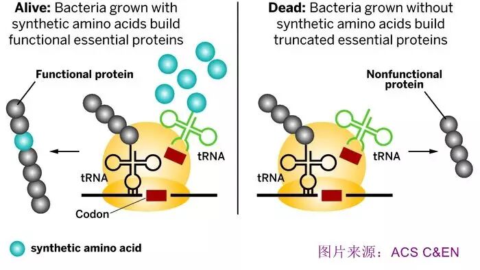 转基因生物是公认的用于生产酸奶、丙二醇和胰岛素等的主力,它们的应用目前仅限于实验室和工厂。然而,转基因细菌可能有一天会被投入到更接近人们日常生活的地方,比如我们对抗胃肠道疾病的肠道益生菌或清理漏油的微型清洁工。但是,研究人员需要可靠的策略来严格控制这些合成生物,并在它们的工作结束后消灭它们,以防止它们或其合成的基因不受控制地逃逸到环境中。今年以来,转基因生物控制领域取得了一些重要进展。今年一月,由哈佛医学院的George M. Church和耶鲁大学的Farren J. Isaacs带领的团队改写了大肠杆菌的DNA,使这种细菌需要合成的特殊氨基酸才能生产其必需的蛋白质(Nature, 2015, DOI: 10.1038/nature14121;Nature, 2015,10.1038/nature14095)。新的大肠杆菌对合成氨基酸的的依赖性将使这种转基因生物在实验室外几乎肯定无法生存,因为这种合成氨基酸并不存在于自然界。这种创新的策略在技术上其实很难实现,因为研究人员需要重新设计转基因生物大部分最重要的蛋白质,使它们依赖于合成的氨基酸。与此同时,本月初麻省理工学院的James J. Collins及其同事们报告了一个可能是更快更容易实现的替代控制策略:“死亡开关”,可以添加到转基因生物的两个新的基因通路,这些通路保证转基因生物的生长和生存仅在化学品的特定组合的存在下实现(Nat. Chem. Biol., 2015, DOI: 10.1038/nchembio.1979)。