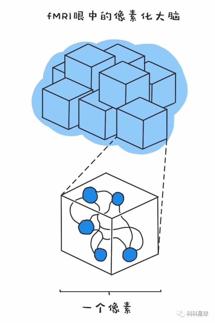 fMRI就像一个3D照相机,每秒给大脑拍一张照片。在这个机器的眼里,大脑被分割成了一百万个小立方体,每个立方体就是一个像素。