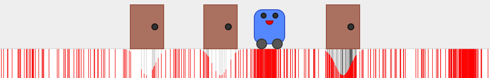 蒙特卡罗定位法(Monte Carlo localization)又称粒子滤波定位法(particle filter localization),可以有效地解决这类室内定位的问题。我们以一个实例来看一下这个算法的运用。首先我们把一个机器人放到一个一维的空间上,如图所示。