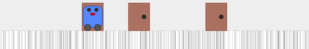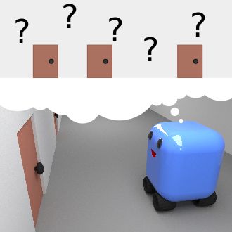 在这个一维空间上,机器人通过前期的探索,已经知道这个空间一共有3个外观都是一样的门,并记录了门口的样子。