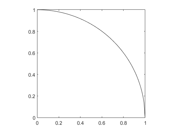 我们先设置一个1×1的空间,在这个空间中以点(0,0)为圆心,画一个半径为1的圆,在1×1空间中留下四分之一圆。