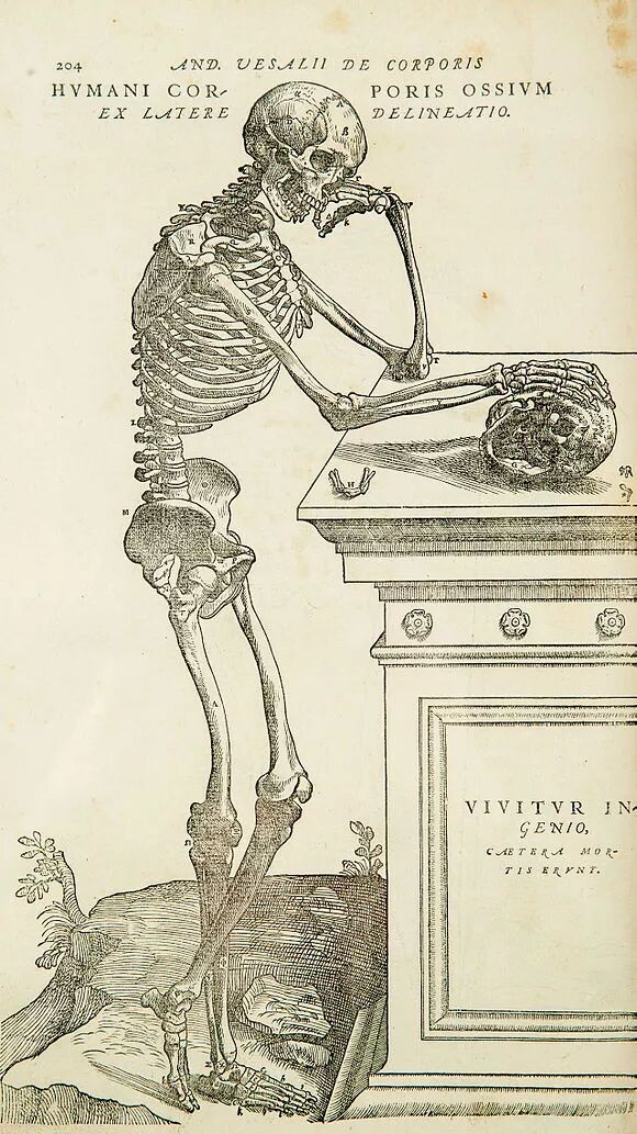 ○ 1543出版的《人体的构造》,是安德雷亚斯·维萨里写的一套关于人体解剖学的著作。| 图片来源:Wikipedia
