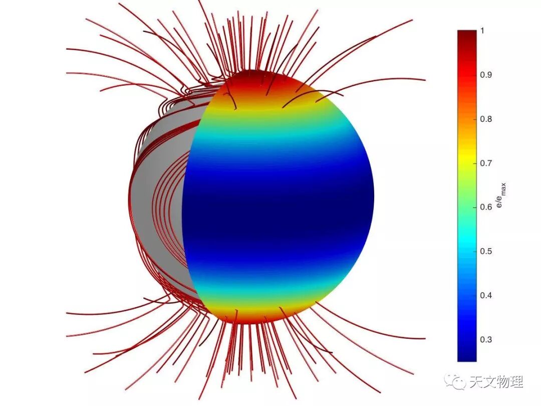 这些密度非常大的天体半径约为10公里,但质量却比太阳大1.5倍。中子星有很强的磁场,并且快速旋转,一般中子星每秒旋转超过100次。中子星通常以磁场为模型,磁场有南北磁极,就像地球一样。然而一个简单的“偶极”模型并不能解释中子星的困惑,比如为什么它们表面的某些部分比平均温度要热得多。利兹大学的Gourgouliatos和Rainer Hollerbach利用利兹大学的ARC超级计算机进行了数值模拟,以了解当磁场在中子星内部演化时的复杂结构形式。