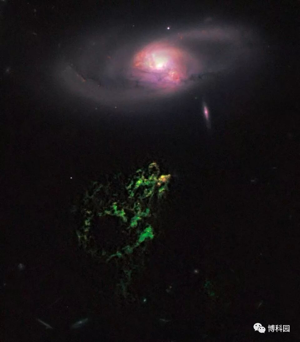 宇宙第四种操作:演化的Voorwerpjes,星系有时会有绿色发光的伴星:剥离和电离物质