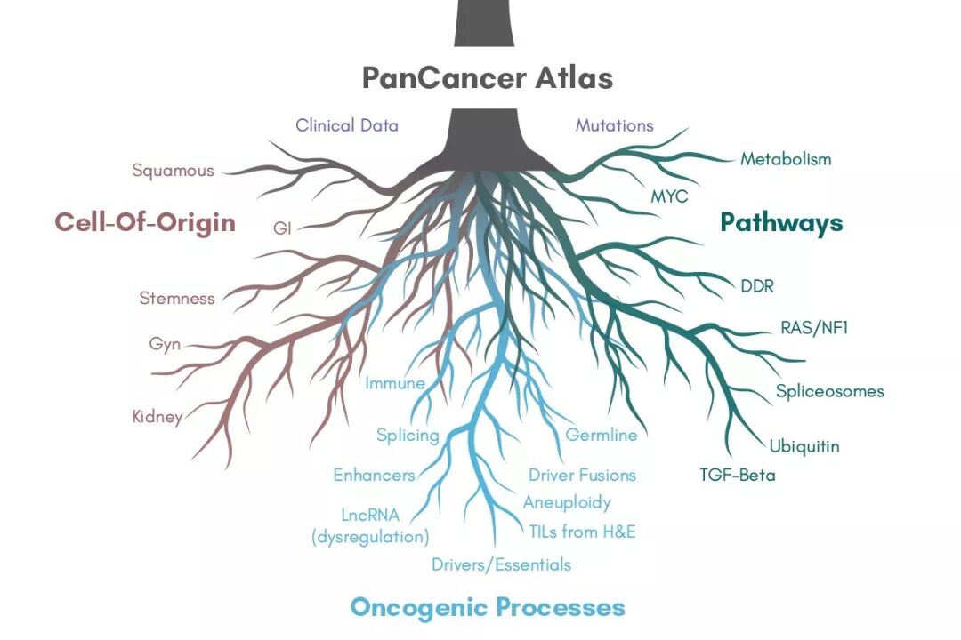 如今,基于对涵盖了33种主要癌症类型的1万多份癌症案例的分析,PCI项目公布了更大规模的基因组与分子数据分析结果。这项由美国国家癌症研究所(the National Cancer Institute, NCI)和美国国家人类基因组研究所(the National Human Genome Research Institute, NHGRI)合作取得的分析结果又被称为“泛癌症图谱”(the Pan-Cancer Atlas),是迄今为止最全面的跨癌症分析,也是癌症基因组图谱(The Cancer Genome Atlas, TCGA)项目的最终成果。研究结果已于4月5日通过27篇论文发表在《细胞》(Cell)、《癌细胞》(Cancer Cell)、《细胞报道》(Cell Reports)和《免疫》(Immunity)期刊上。