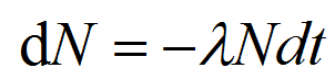 dN是单位时间衰变的原子数, 为衰变常数。对这个式子进行积分,当 t =0 N = N0即初始的原子数量,即
