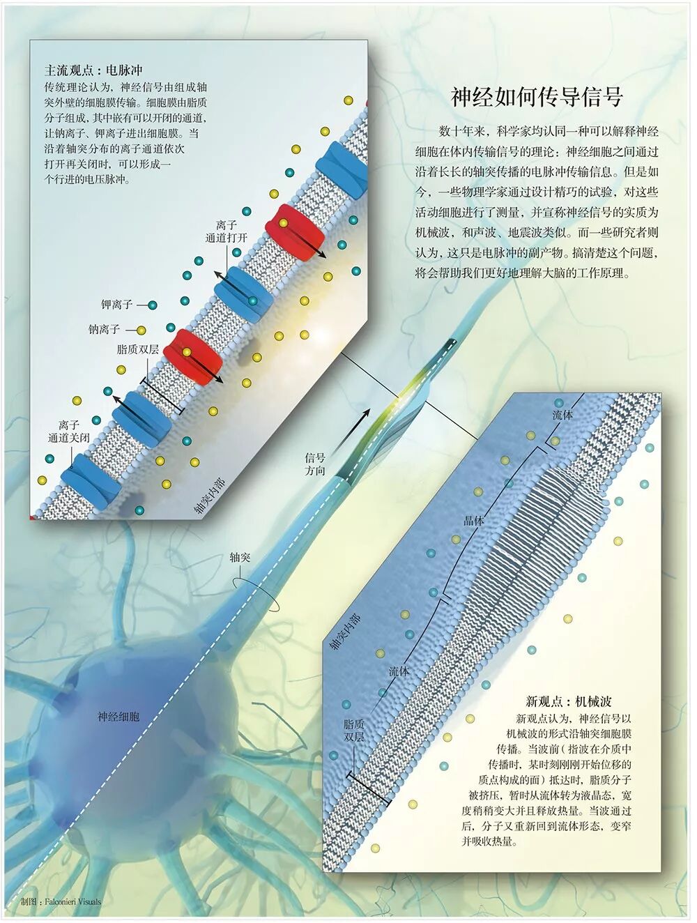 亨伯格把自己的理论命名为孤波理论(soliton theory,孤波指的是在传播过程中保持形状不变的波),但迄今为止生物学界的态度让他沮丧。他的理论最早发表在 2005 年的《美国国家科学院院刊》(Proceedings of the National Academy of Sciences,PNAS)上,尽管该杂志在学术界有很高声望,但是对他的批评自那时起就没有停息过。