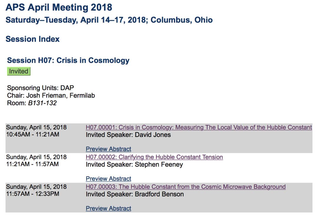 在美国物理学会的四月份会议中,物理学家David Jones、Stephen Feeney 和 Bradford Benson 在一场主题为“宇宙学危机”的座谈上探讨了一个现在被许多人接受为真实存在的问题:哈勃常数问题。