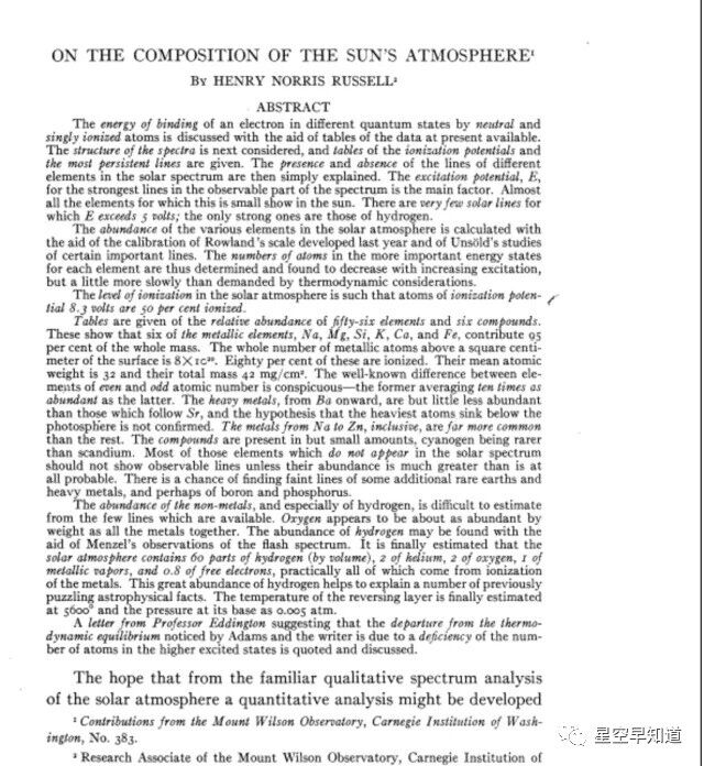 1929年,罗素发表的论文《关于太阳大气的组成》,其中得到了与佩恩一致的结论