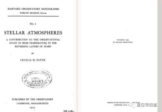 1925年,佩恩发表了题为《恒星大气》的博士论文封面,这篇论文后来被认为是传世的经典著作