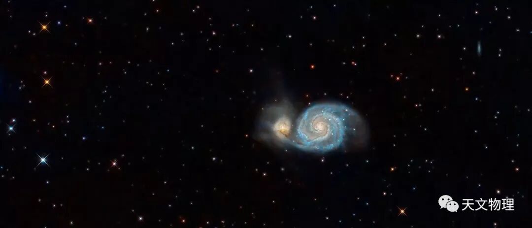 自19世纪以来,天文学家们一直在密切注视着M51或漩涡星系,它的标志性螺旋结构告诉人们关于星系和宇宙的本质的早期争论。但是,没有人能够用肉眼或日益强大的现代望远镜观测到这一现象——西方国家储备大学的天文学家首次在亚利桑那州西南部的山上使用一架翻新过的75年望远镜观测到这种情况。凯斯西储大学的天文学教授Chris Mihos说:我看着这张照片,这到底是什么?它被证明是由附近星系喷出的巨大的电离氢气体,然后由星系中心黑洞的辐射“煮熟”。