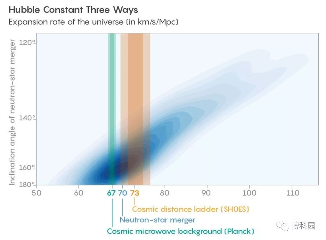 新发现的“标准警报器”提供了一种独立、合适的方法来测量宇宙膨胀速度。对于许多宇宙学家来说,中子星合并的最好之处是将宇宙另一个秘密公之于众。科学家将近期发现的两颗恒星碰撞时产生的引力波和电磁信号结合起来,以更清晰的方式确定宇宙结构的膨胀速度,这是一个颇有争议的数字:叫做哈勃常数。