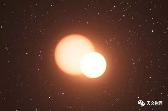 一个食(EW)双星系统的艺术想象图,其中一颗成员星是造父变星
