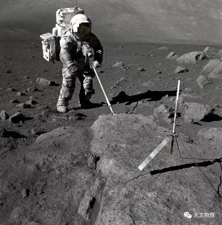 在1972年12月的阿波罗17号任务中,宇航员哈里森·施密特使用一个可调节的取样勺来提取月球样本。最新恢复的月球数据磁带显示,阿波罗号宇航员的活动使月球表面略微变暖。图片:NASA