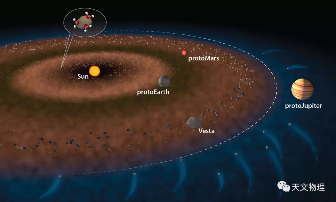 早期太阳系的图解,主要理论认为它是由星际尘埃和气体组成的分子云形成的。图片:Jack Cook, Woods Hole Oceanographic Institution