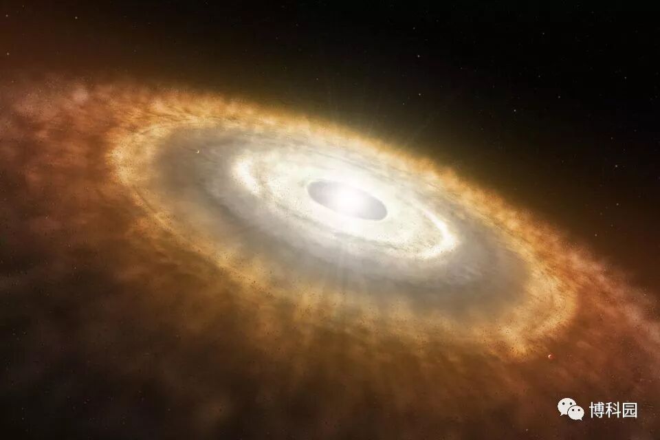 对一颗被原行星盘包围年轻恒星的概念图,关于类太阳恒星周围的原行星盘有许多未知性质,包括各种类型原子的元素分离。图片:ESO/L.Cal ada