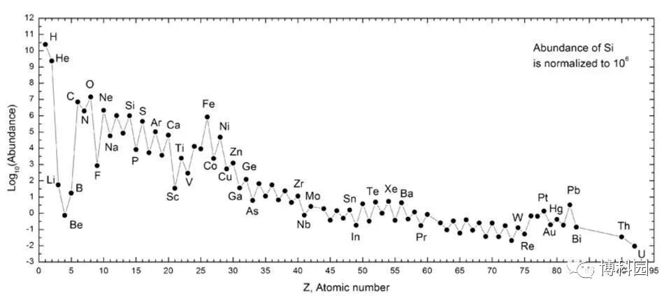 太阳系测量的今天宇宙中元素丰度。图片:Wikimedia Commons user 28bytes