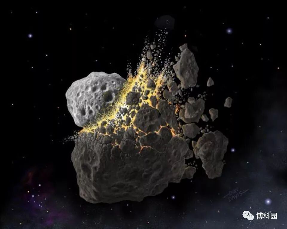 四亿六千六百万年前的太空碰撞,造成了今天许多陨石的坠落。图片:Don Davis, Southwest Research Institute