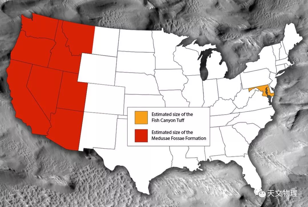 然而,研究人员预测,Medusae Fossae曾经覆盖超过200万平方英里(500万平方公里)的土地。火山也不是一夜之间就能形成美国西海岸那么大的矿床。研究人员说,火星上的火山必须爆发出巨大的爆炸,这可能是我们太阳系所见过的最大规模的火山喷发。更重要的是,这些巨大的火山爆发必须在大约5亿年的时间里发生数百次,才能产生像墨杜萨火山那样大的矿床。