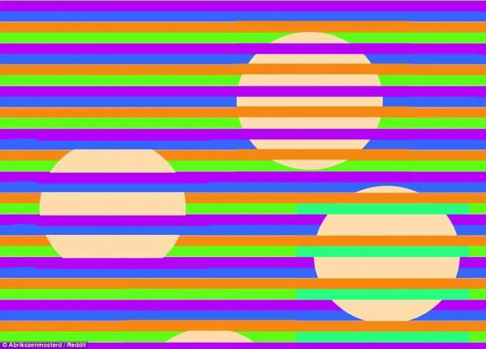 继裙子究竟是蓝黑还是白金之争后,又来了一张图,简直快要摧毁我们对于自己眼睛的信任:这些圆圈竟然都是同一个颜色?