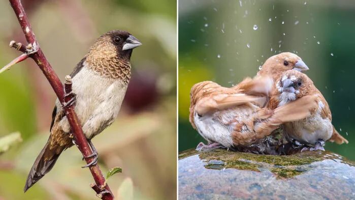 左图为野生文鸟,右图为孟加拉雀。| 图片来源:FLPA/ALAMY STOCK PHOTO; STUART HOUGH/ALAMY STOCK PHOTO