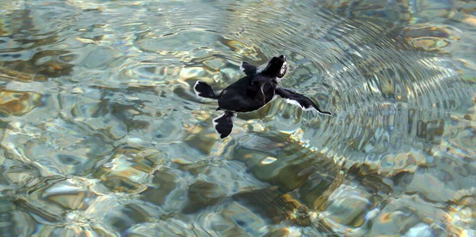 一番忙碌后,为尚未出世的宝宝准备的巢穴已经成型。随后,雌龟安心地在巢中产下卵,静静等待两三个月后,新孵化的小龟从巢中钻出。