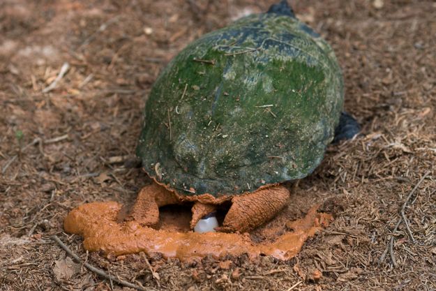 万物蓬勃的春夏之交,一只雌性红耳龟(Trachemys scripta elegans)一刻不停地忙碌着。它小心翼翼地用后肢在潮湿的泥土里刨出一个坑。它已经为肚子里的卵物色好了这块宝地,还需要尽快为这些卵建好安身之巢。