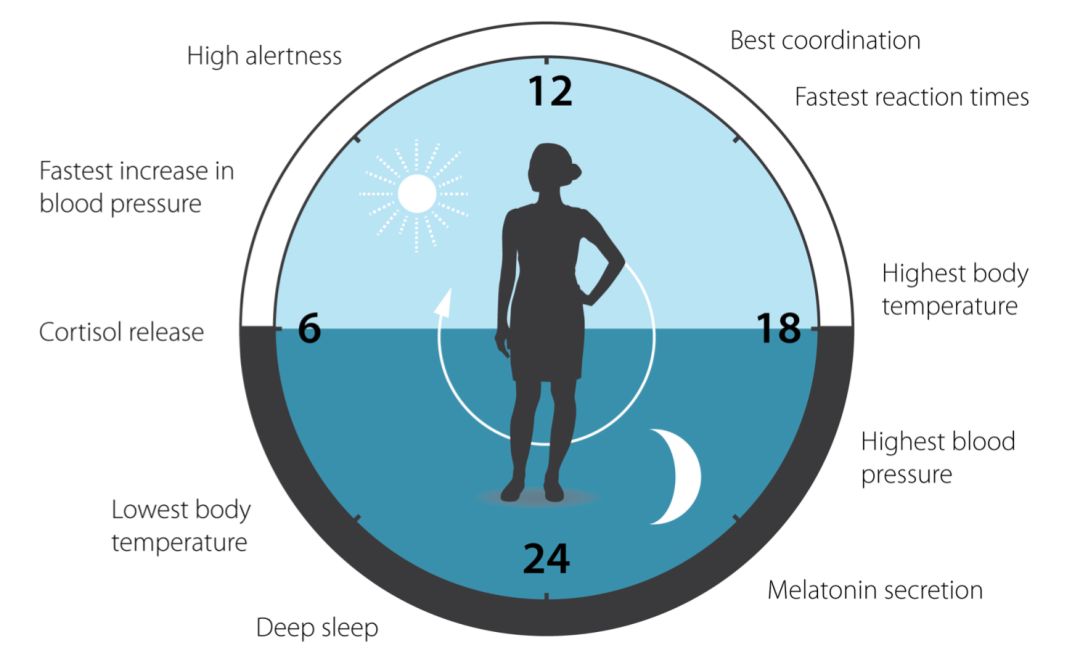 ○  昼夜节律示意图。生物体的昼夜节律根据自然的日出日落来调节,并不会强烈地受到日常活动的影响。而大脑的情节记忆,也就是发生在特定时间、地点,与独特的情感和知识关联的个人经历,不能够保持精确的时间刻度,而是记录体验里的事件顺序。情节记忆有两个特点:(1)时间编码的过程自发产生,而没有行为训练;(2)可以捕捉体验可能发生的不同的时间尺度。| 图片来源:NobelPrize.org