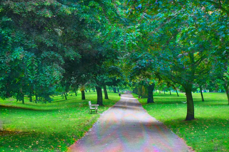 但为什么我们看到的形状是克吕弗细分出的那些呢?考恩、埃尔门特劳特和他们的合作者提出了一种广为接受的解释:视野在视觉皮层中纹状区的表征方式造成了这些图案的出现。“如果你打开某人的脑壳,看看活动中的神经元,你将不会像透过缩小镜那样看到一幅外界的真实图像,” 考恩的合作者之一、凯斯西储大学的皮特·托马斯(Peter Thomas)说道。托马斯解释说,当图像映射到皮层上时,就会产生某种坐标变换。如果激活和非激活的神经元构成了交替的带状图案,那么条带的方向不同,你就会看到不同的东西。如果条带指向某个方向,你就会看到同心圆环。如果条带的指向与上述方向垂直,那你就会看到射线或者形如隧道的图案从一个中心点放射而出——众所周知,濒死体验中通常会出现光从隧道尽头发出的幻觉。而如果条带的指向与上述方向成斜角,那你就会看到螺旋的图案。