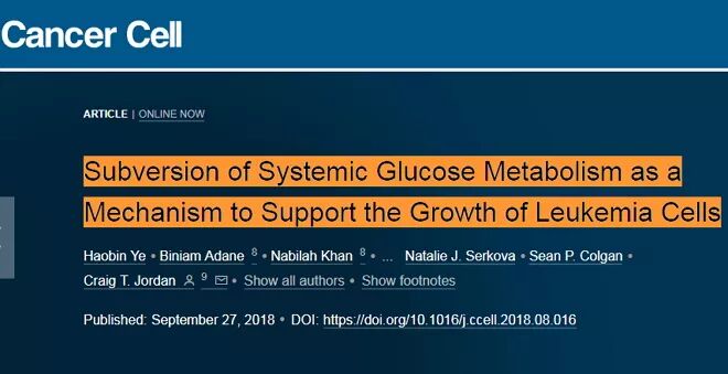 9月27日,《Cancer Cell》期刊在线发表了这一篇题为“Subversion of Systemic Glucose Metabolism as a Mechanism to Support the Growth of Leukemia Cells”的文章,揭示了白血病细胞“巧取豪夺”的戏码。