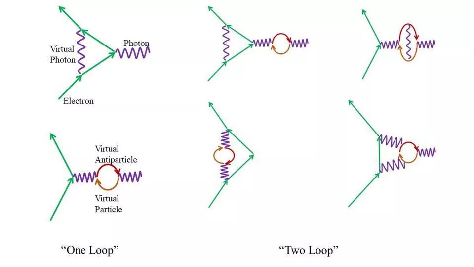 量子物理学告诉我们,永远不可能存在绝对虚空,在周围永远存在零点能量的涨落,电子会和这些零点涨落的场相互作用。根据费曼描述的图像,相互作用是以周围电子的“虚粒子”云的形式出现的,这些虚粒子云传导着电子和施加的场的相互作用。