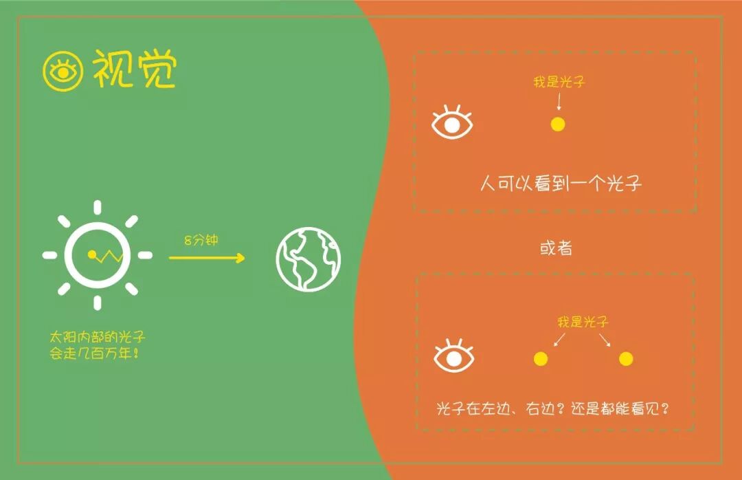 一种情况下,光子会进入一个人视网膜的左侧或右侧,这个人会注意到自己在视网膜的哪一侧感觉到了光子。另一种情况下,光子会被置于量子叠加态,使其能够完成看似不可能的任务:同时到达视网膜的左右两侧。