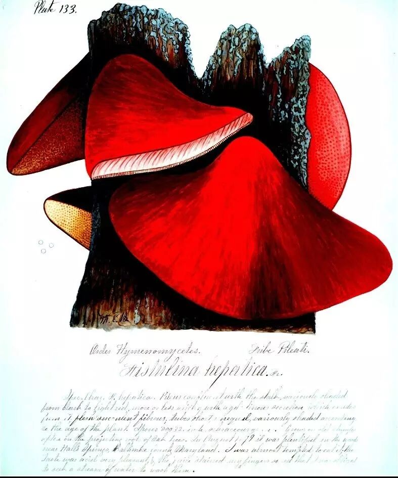 玛丽·班宁在其著作《马里兰州的真菌》中关于贝帝埃真菌(Polyporus beatiei)的插图