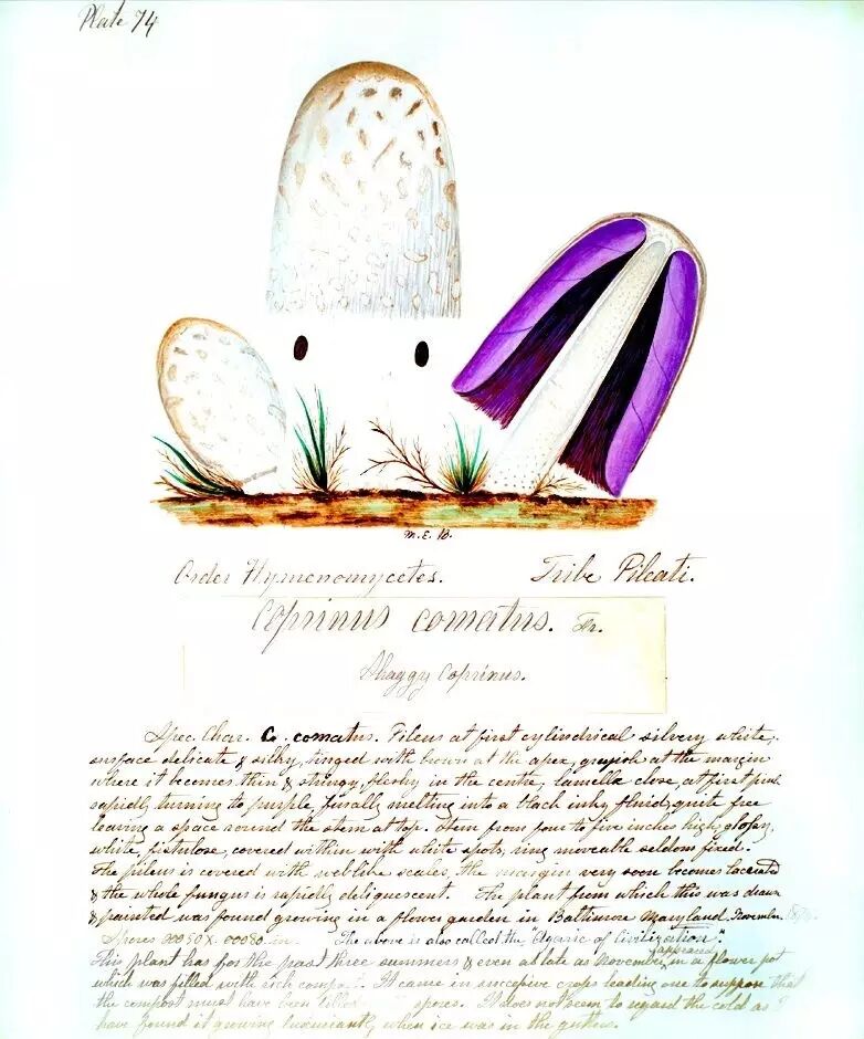 毛头鬼伞(Coprinus comatus,又称鸡腿菇),班宁 绘
